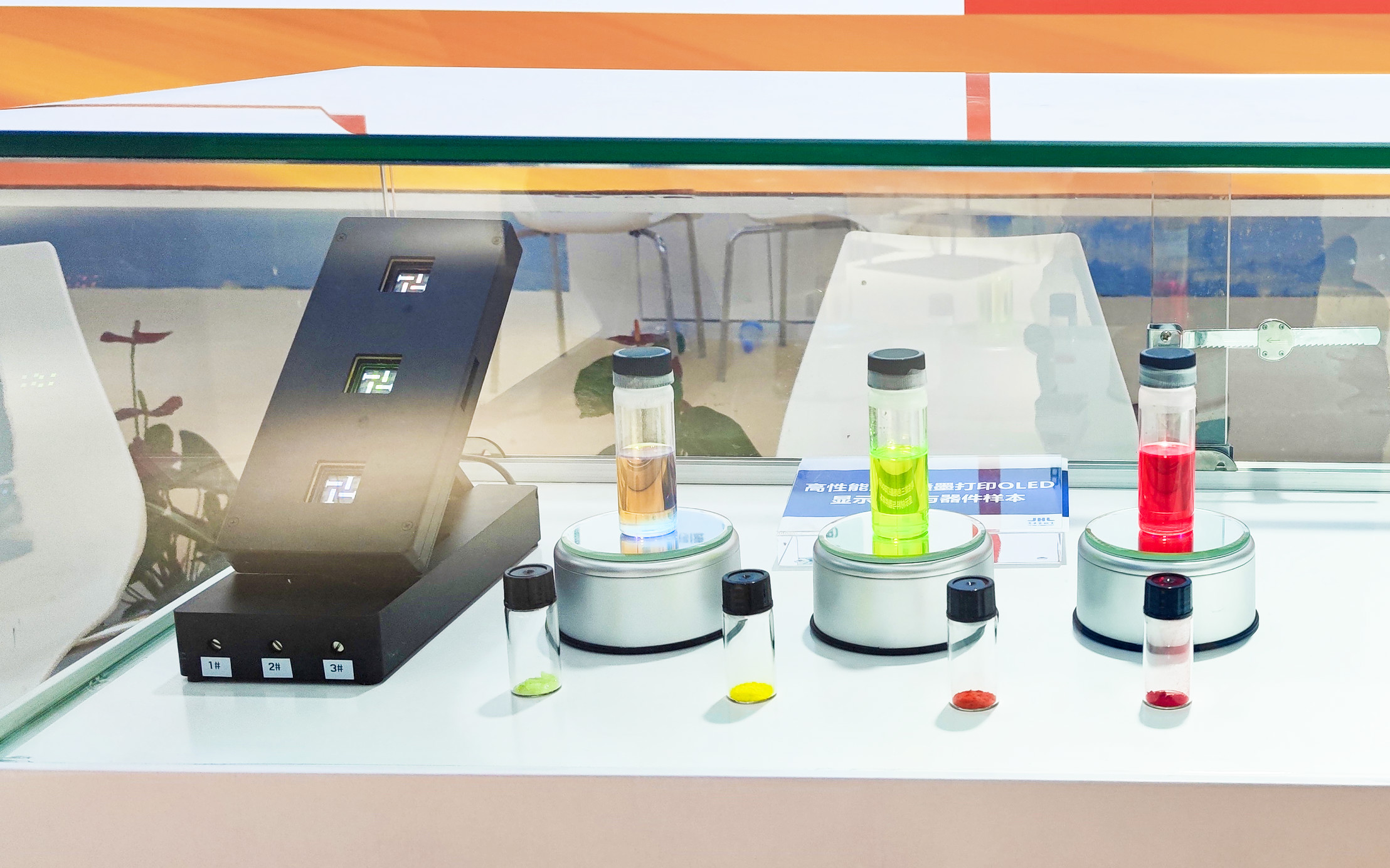 在新型显示领域重点展示了“超高分辨率OLED发光层像素喷墨打印成套验证装备”、“新一代有机电致发光(OLED)显示材料”。其中“超高分辨率OLED发光层像素喷墨打印成套验证装备”主要用于对OLED发光层像素喷印工艺、喷孔控制算法、墨路稳定性等进行验证,可为OLED 4.5代线发光层像素喷墨打印装备提供技术支持。“新一代有机电致发光(OLED)显示材料”发光效率、光色及寿命达到国际领先水平,成本低于同类产品,可应用于平板显示、高端照明、智能穿戴等产品。