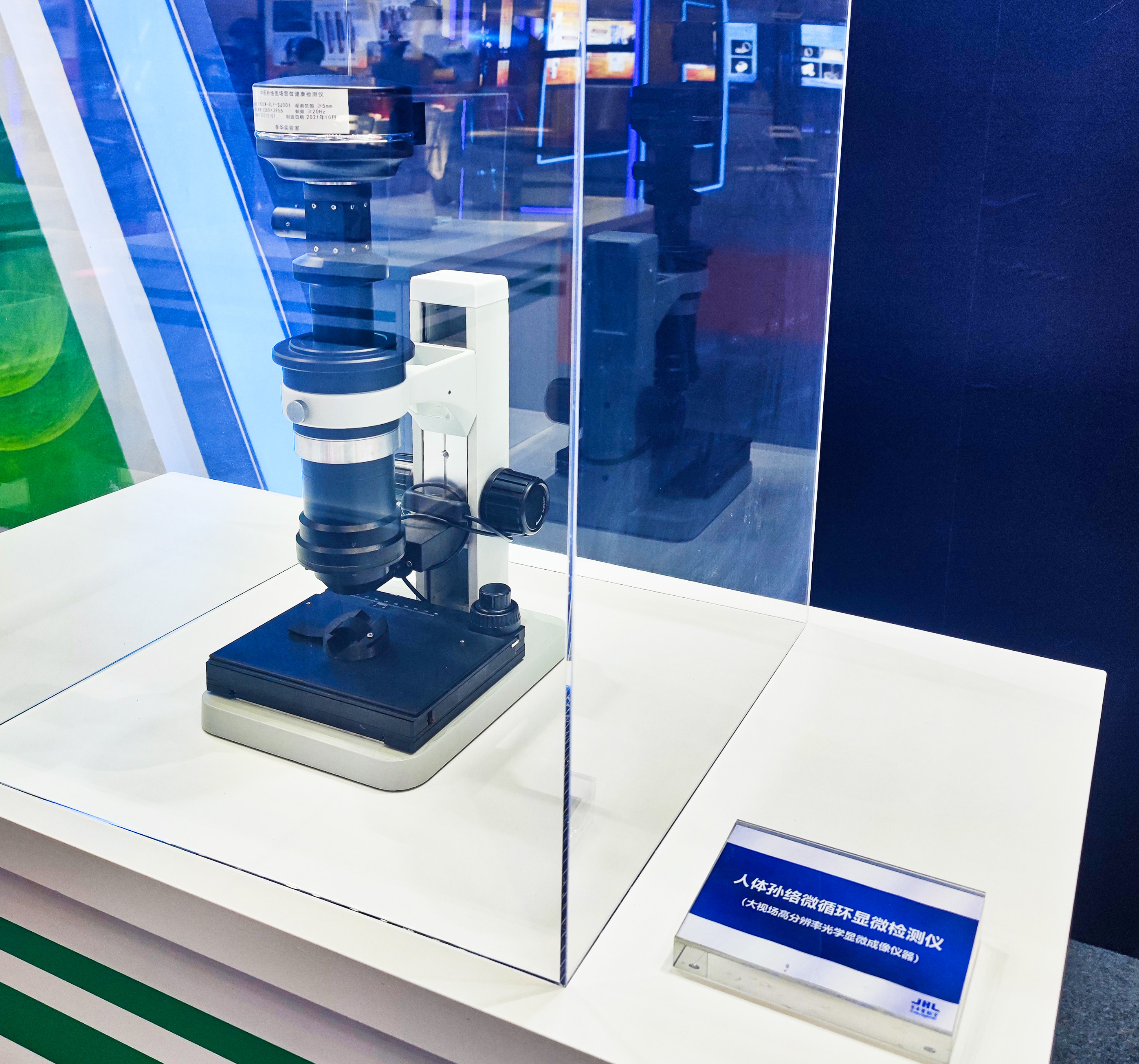 在高端医疗装备领域重点展示了“中医孙络宽场显微健康检测仪”,该设备定位于中医望诊手段的延伸,突破了高通量显微物镜设计与精密制造、高对比度微循环特征图像增强算法等关键技术,实现了中医孙络宽场显微健康检测样机研制。