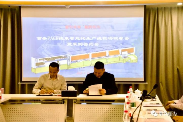 2023年4月25日,季华顺为在季华实验室举办了“行业首条PACK线束智能化生产线现场观摩会暨采购签约会”。该条智能化产线的采购方合肥钜恒科技有限公司,以及比亚迪汽车工业有限公司、比克希(合肥)汽车科技有限公司、郑州越达科技装备有限公司等18家线束产业链企业参加会议。