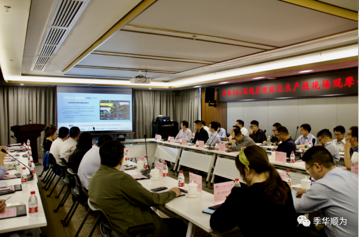 随后,举行了一场技术交流会,大家对季华顺为潜心研发的线束智能化生产线予以充分肯定。交流会上,各企业代表畅所欲言,分析和交流了线束生产中的难痛点和解决方向。在交流中,企业代表更深入和准确地了解了该条智能化生产线的功能和优势,也提出了一些建设性的意见和建议。
