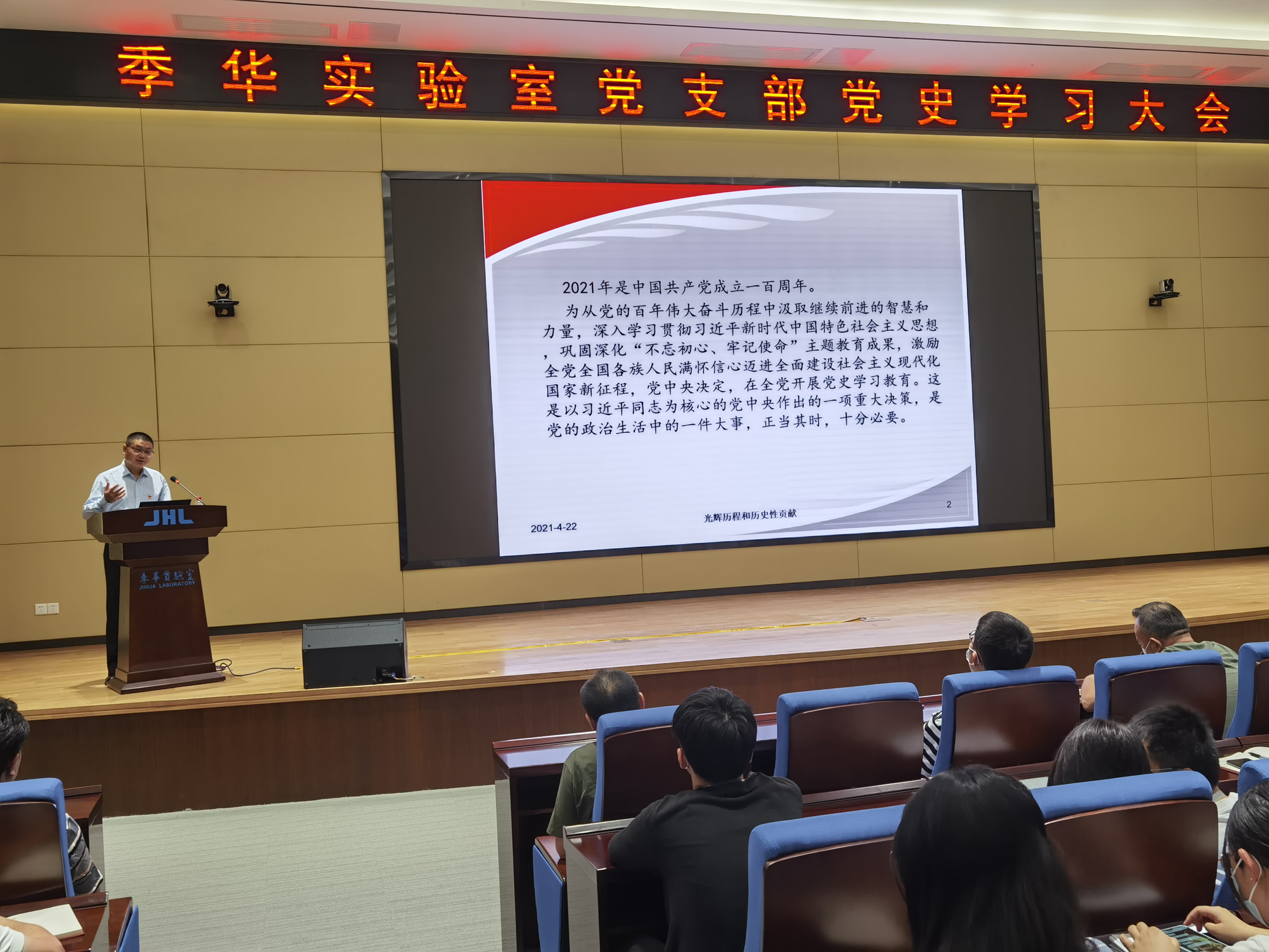 4月22日下午,季华实验室邀请了市委宣讲团成员、市委党校副校长刘宁开展党史学习教育讲座,有82名党员参加了此次党史学习教育,党支部副书记、主任助理甘泽龙主持了本次讲座。