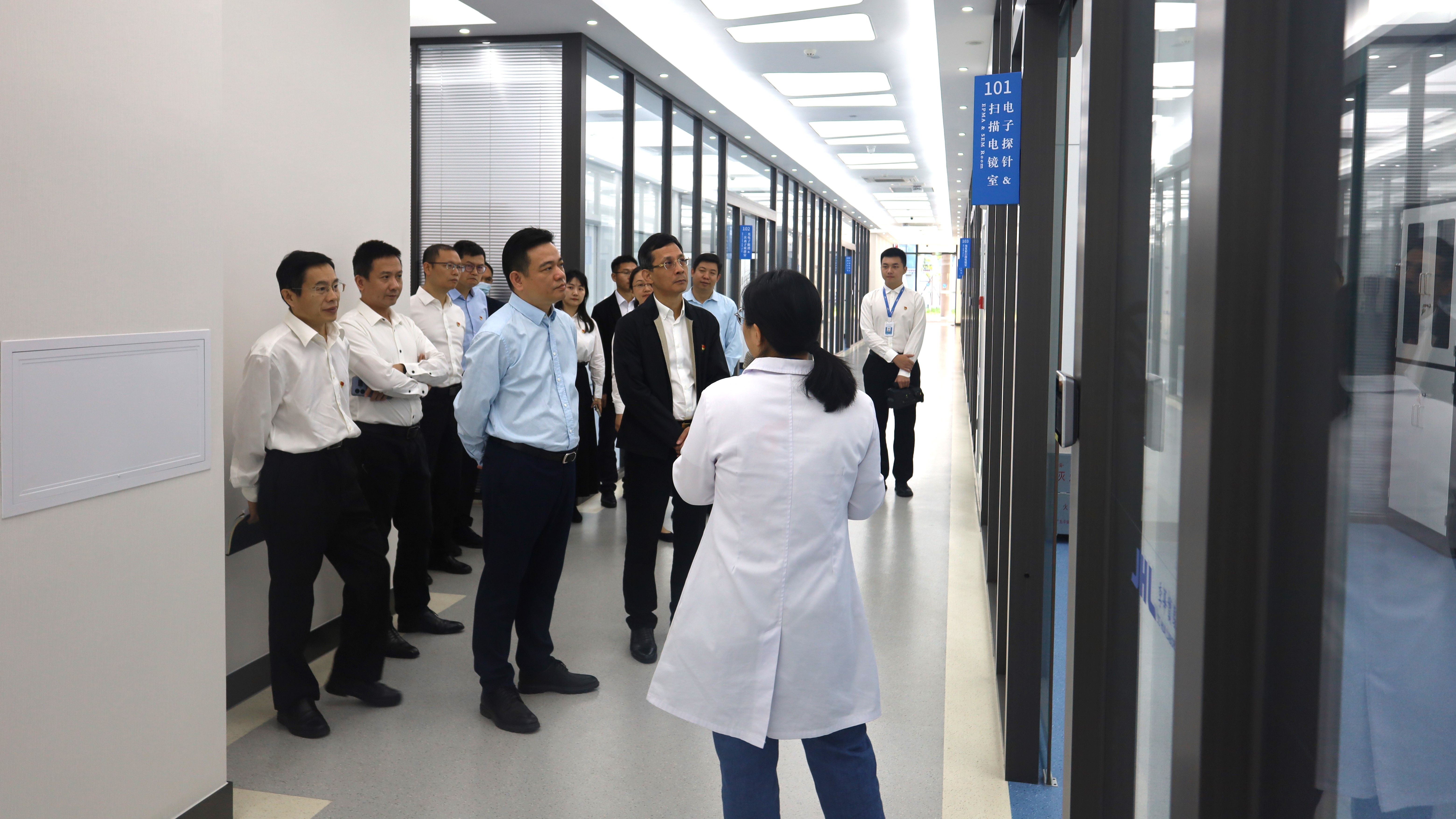 调研组一行首先到季华实验室公共科研平台测试中心调研考察。在测试中心,调研组一行认真听取了测试中心青年党员科研骨干熊婷介绍测试中心各研究室建设情况,相关检验检测仪器设备应用场景,并详细了解了季华实验室公共科研平台发挥科技促进作用、推进仪器设备开放共享服务的具体做法及服务企业情况。
