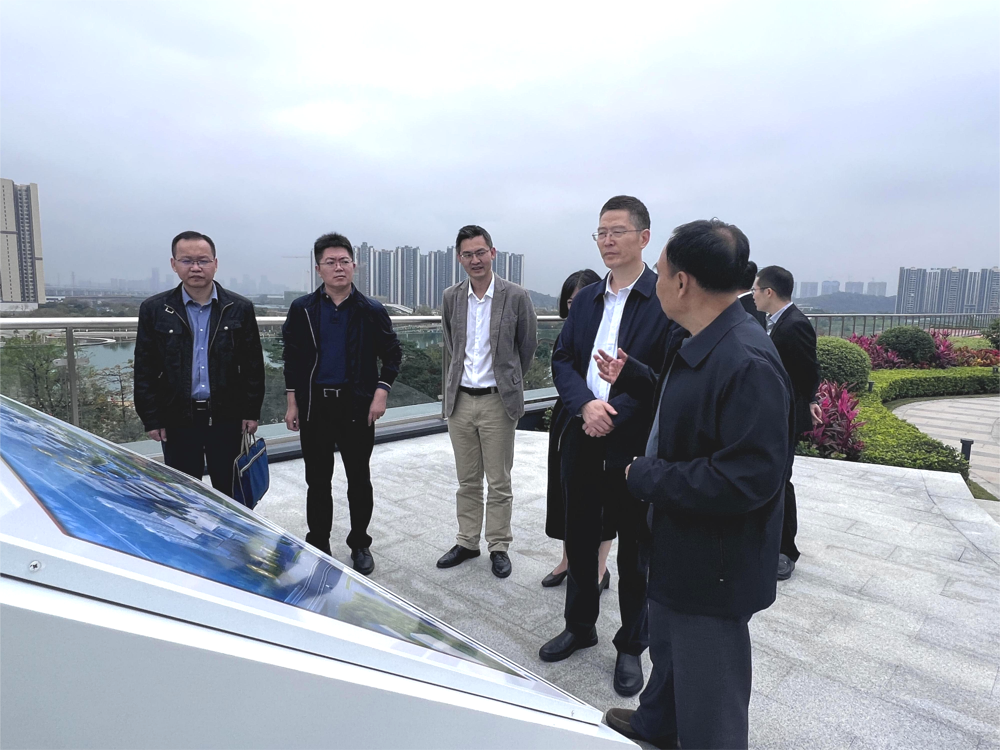 徐波一行首先在季华实验室C区六楼平台,考察实验建设情况及周边环境。