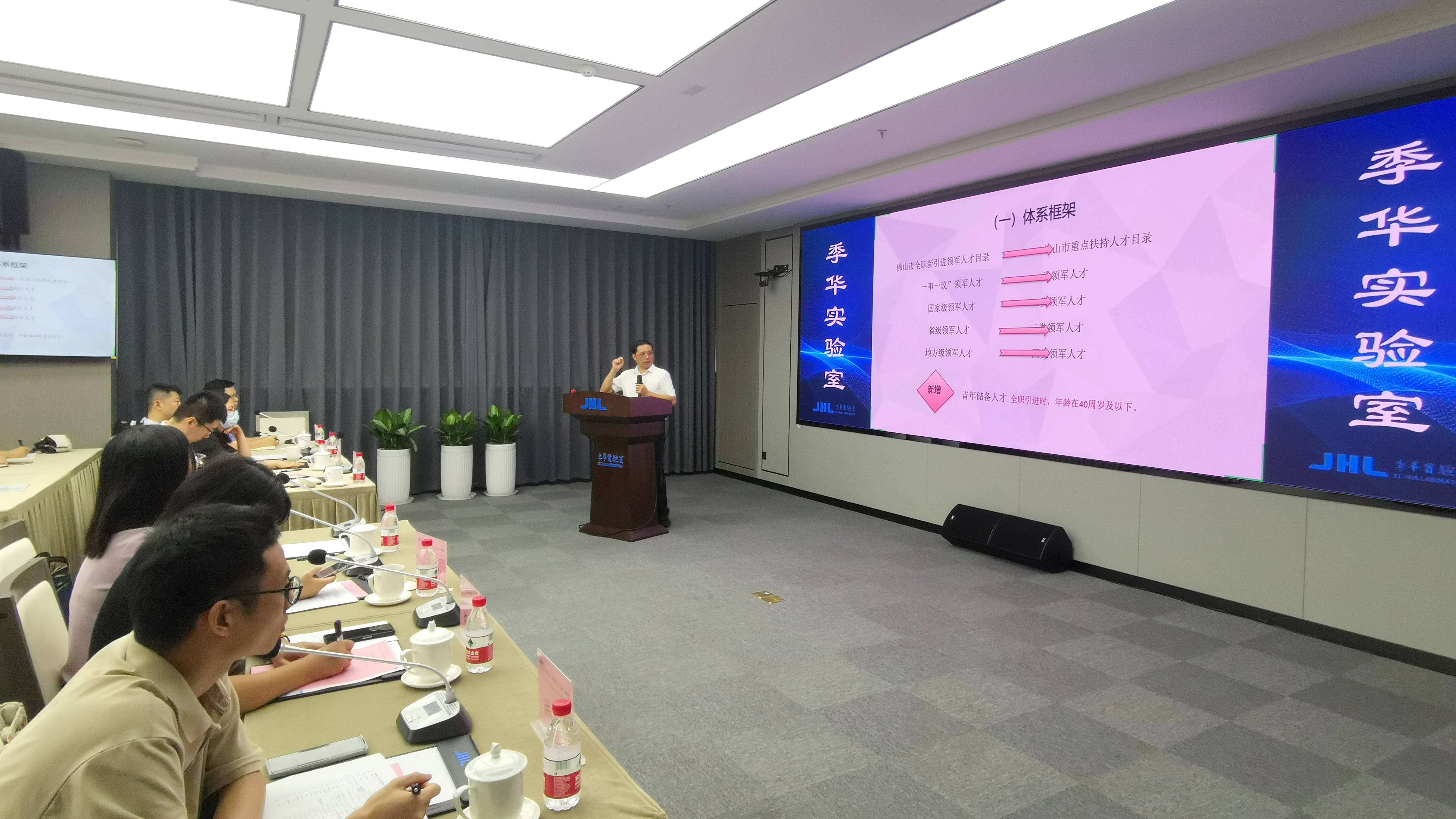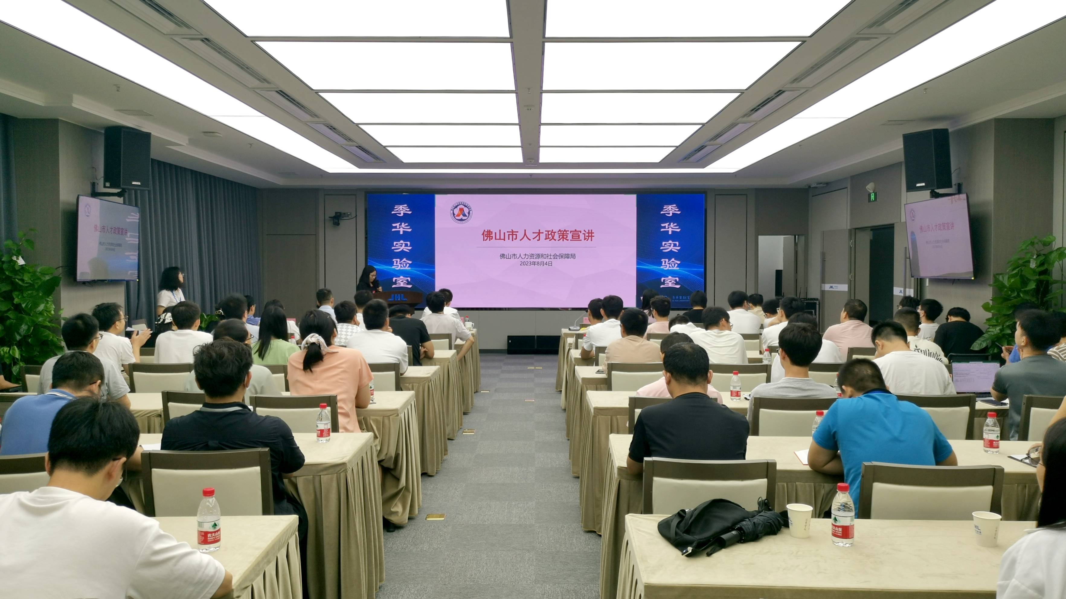 2023年8月4日上午,佛山市人才新政宣讲会在季华实验室C区五楼会议室举行。市委组织部人才办科长何建国、市人力资源社会保障局人才开发科二级主任科员张洁贞、市住房城乡建设局办公室四级主任科员于智超及优粤佛山人才卡平台的领导及工作人员组成的政策宣讲团,为实验室人才全面解读了佛山市人才新政。季华实验室人力资源处处长宁宇以及来自实验室科研团队、管理部门的200多名人才通过线上和线下的方式参加了会议。