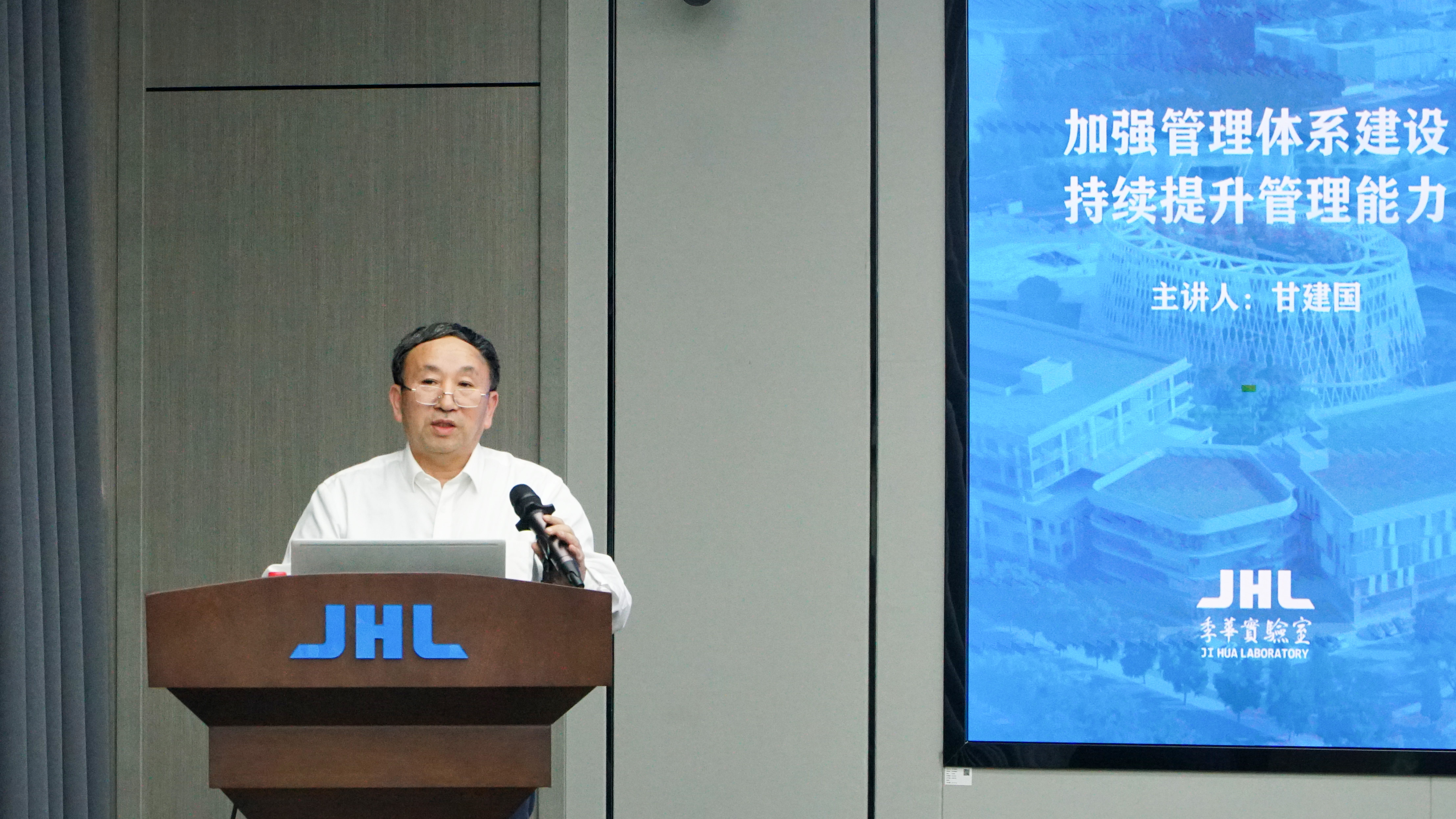 为推进实验室管理体系建设和管理效能提升,加强干部队伍能力素质,2023年11月15日下午,“季华大讲堂”特邀中国科学院长春分院分党组书记、系统单位党委书记、院长甘建国研究员作题为《加强管理体系建设,持续提升管理能力》的主题报告。报告会由实验室主任助理甘泽龙主持,佛山市科技局党组书记、局长,实验室党委书记薛立伟,实验室党委副书记、纪委书记周新,实验室各管理部门和研究部室中层干部,以及来自佛山市科技系统的各相关人员参加了报告会。