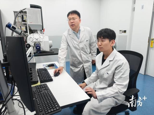 △米少波(左)的学术研究,聚焦于先进制造关键材料与器件界面的结构和特性研究。黄艳姿摄