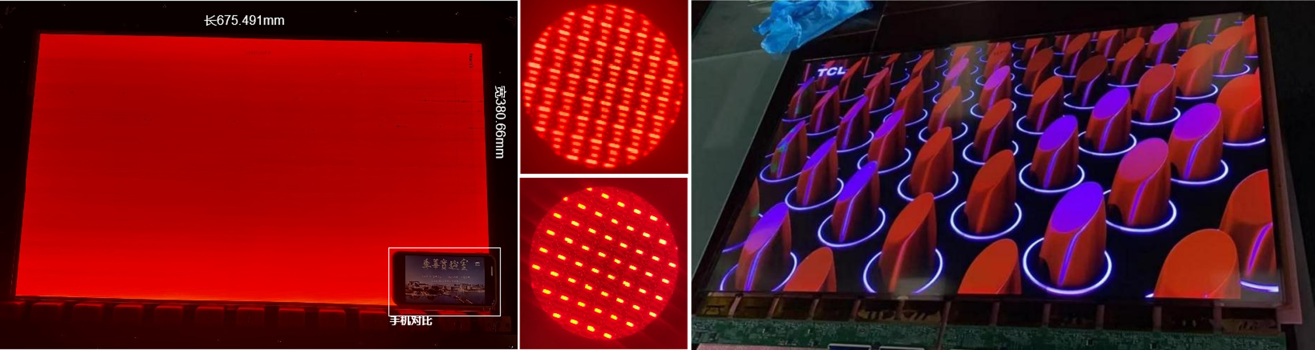 图5. 31吋基板全彩打印点亮测试及图案化展示