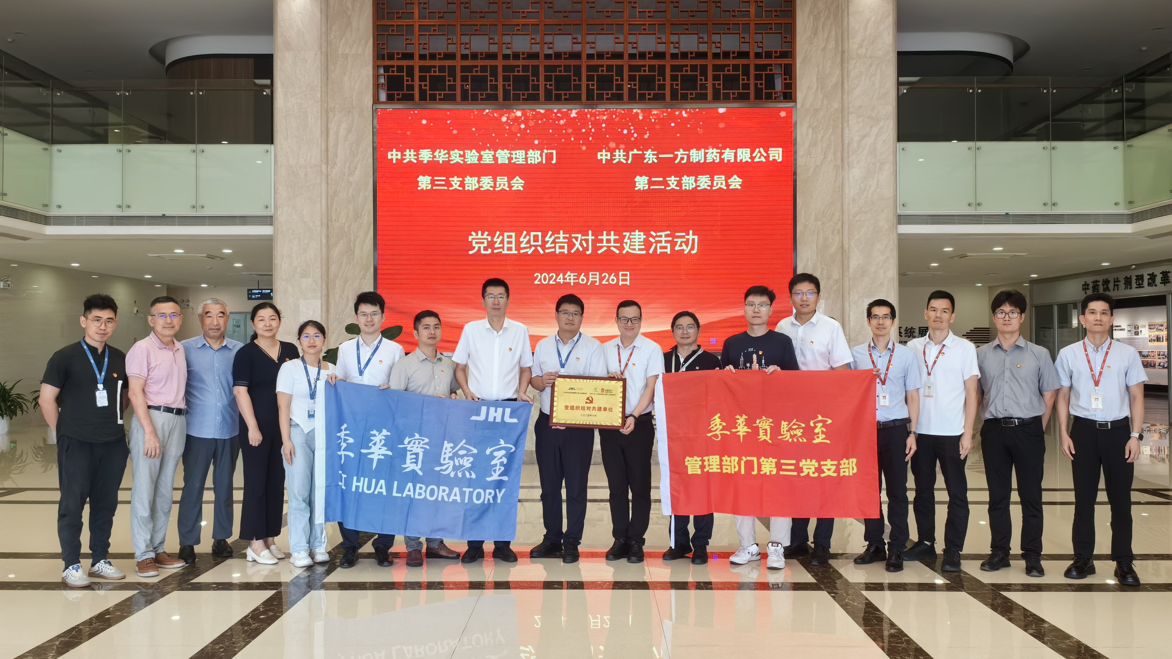 最后,季华实验室管理部门第三党支部与一方制药第二党支部结对共建。