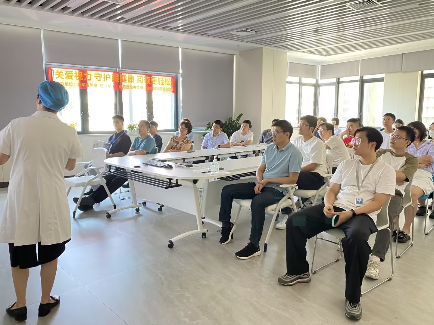 活动主要通过眼健康知识讲座与现场眼健康检查相结合的方式开展。讲座期间,眼科专家向职工们介绍了常见的眼部疾病、症状、影响与诊疗方式,并分享了正确用眼的方法,强调“定期检查,早期预防”。随后,眼科工作人员引导职工有序开展相应的眼部检查:包括干眼SPA护理、视力检测、验光检查、眼底检查、裂隙灯检查,并根据检查报告给出专业建议及咨询服务。检查结束后,工作人员还贴心地为大家准备了护眼小礼品。