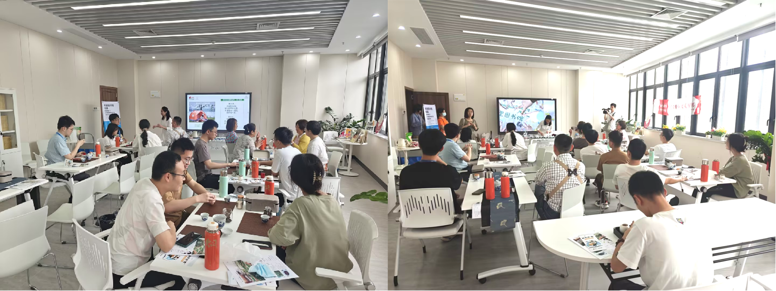 除了借阅服务,佛山市图书馆为实验室职工开展了茶文化鉴赏活动,通过茶文化简史的讲述,茶道礼仪的分享,带领大家体验了一场“茶艺至美,茶道至心”的茶文化之旅,在高级茶艺老师的带领下,大家不断挥动手腕,耐心地开始加水、打泡、点茶,使茶沫与水交融,把初学的“点茶”技艺发挥得淋漓尽致,在一系列的操作之后,大家都点出了属于自己的一抹茶。