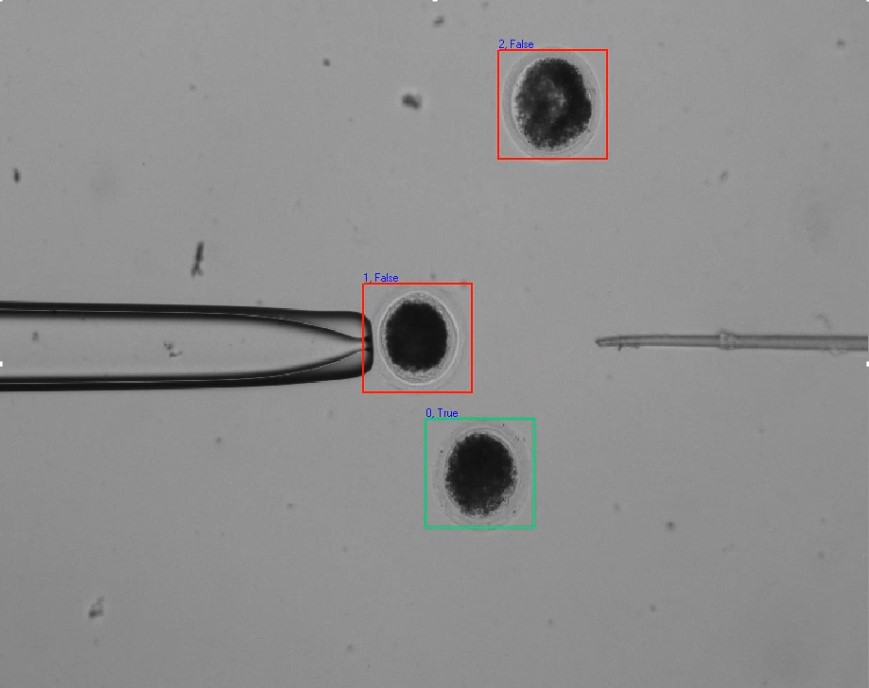 团队已经成功开发出面向基因导入的显微操作机器人,并能实现多细胞识别、细胞抓取、细胞穿刺、多细胞管理和自动对焦等功能。下图为第一代细胞显微操作机器人样机细胞操作图。