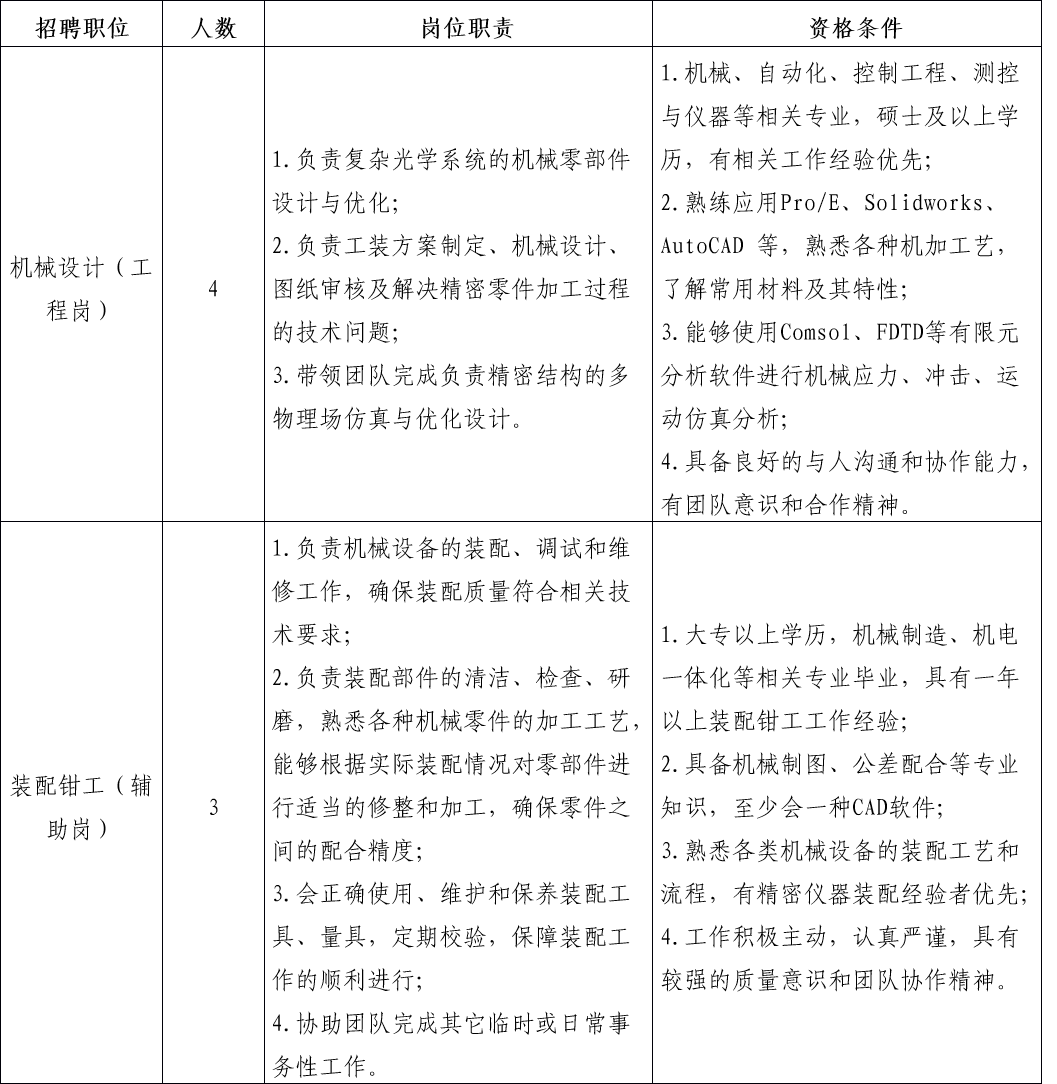 现根据工作需要,实验室精密机械加工中心拟招聘如下劳动合同制岗位: