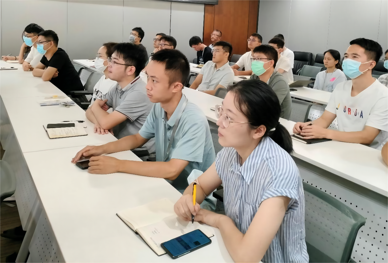 华南师范大学先进光电子研究院唐彪研究员等五位学者以材料-工艺-装备相结合的系统创新为主题,与实验室青年学者进行“零距离”科学讨论。季华青年人才踊跃发言,就打印应用装备(3D打印、数码印花、数字喷码、印刷电子等)、新型显示技术(喷头研发、制造工艺、喷墨打印控制软硬件等)、新型显示材料(OLED材料、QD材料、TFT材料、电子纸材料等)等方向提出了一系列高水平问题和想法。