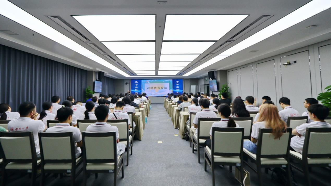湖南大学专业学位科科长颜璠在发言中介绍了湖南大学的办学起源、发展历程,她强调了培养基础扎实、视野开阔、德才兼备,具有良好人文素养、科学精神和创新能力的新时代人才培养总目标。颜璠科长叮嘱本次参与活动的湖南大学博士生,要珍惜机会,保持旺盛的好奇心和求知欲,积极交流。她最后表示,希望此次活动能加深湖南大学和季华实验室的交流,围绕人才培养、科学研究、项目攻关、成果转化等方面进一步深化合作,共同面向国家战略需求,以科技创新助力打造国家战略科技力量,为实现高水平科技自立自强,粤港澳大湾区高质量发展贡献力量。