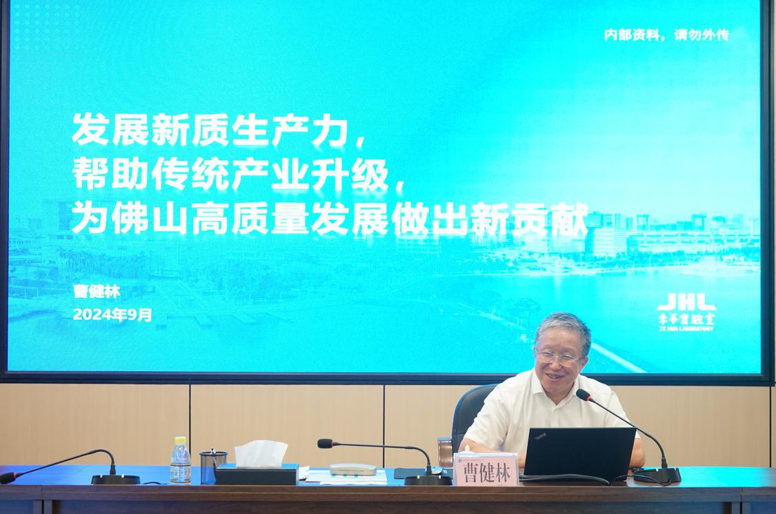 曹健林还介绍了季华实验室基本情况及其重大项目情况等,展示了实验室以产业驱动学科,构建总体部型研发机构,积极推动中国制造升级的生动实践。他表示,季华实验室与市属国有企业有着共同领导、共同责任、共同目标,未来可探索成立共同团队,通过“实验室+国资企业”模式,依托季华实验室下一个五年发展计划,携手投资优质产业项目,为佛山产业转型升级共同开拓道路。