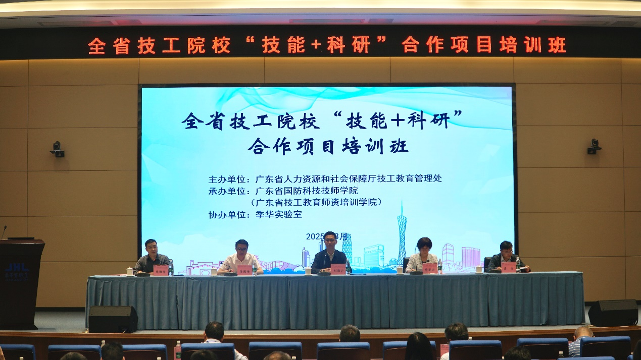 2025年3月25-28日,由广东省人力资源和社会保障厅主办,广东省国防科技技师学院(广东省技工教育师资培训学院)承办,季华实验室协办的技工院校“技能+科研”合作项目师资培训班在佛山顺利召开,来自全省43所技师学院的50名校领导及中层管理人员参加本次培训。
